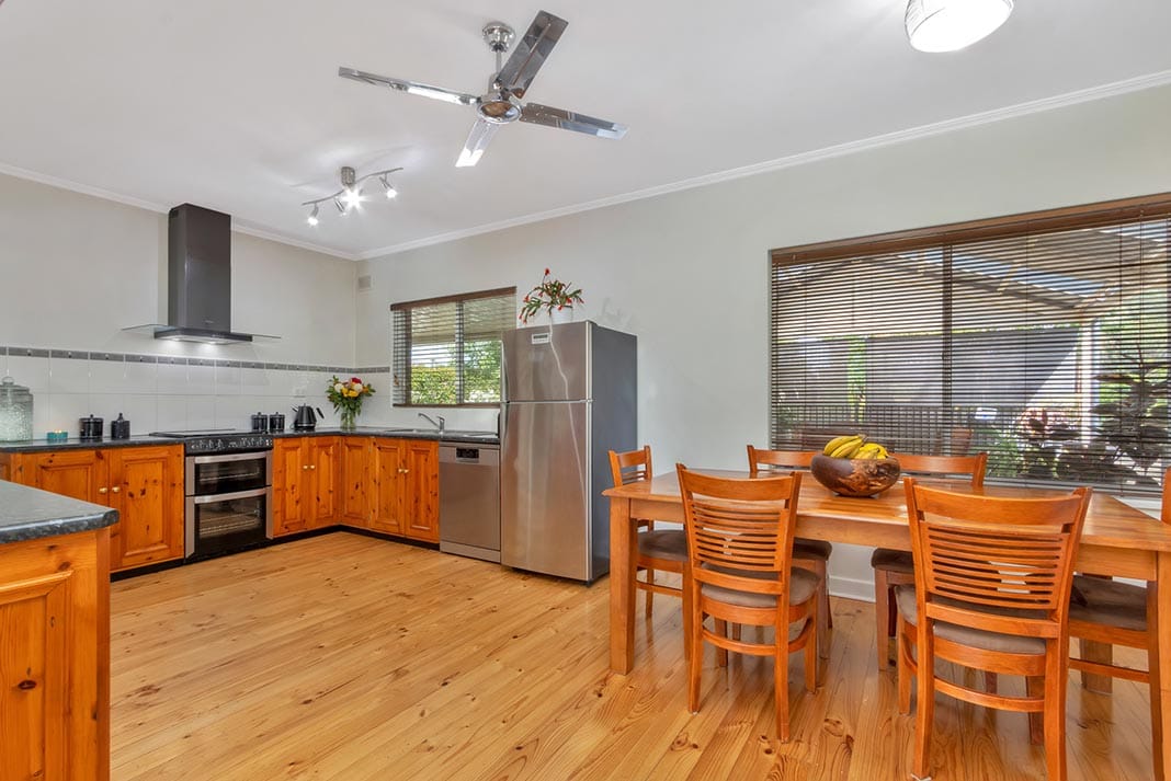 The fantastic kitchen is a chef’s delight, boasting a gas cooktop, a pantry, and ample bench space that flows into the dining area.