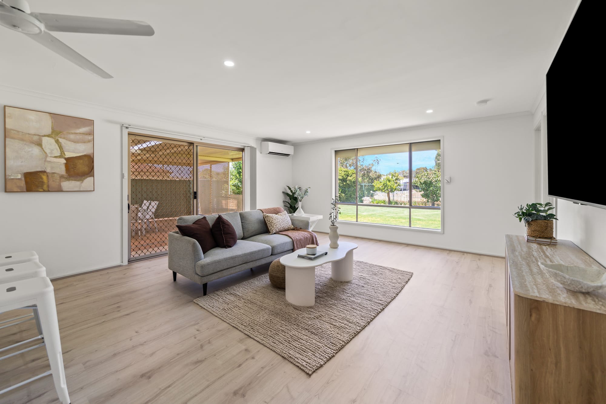 Recent upgrades enhance the home’s appeal, with new carpets and hard flooring throughout, an updated kitchen with brand new appliances, and climate control provided by two split system units and ceiling fans.