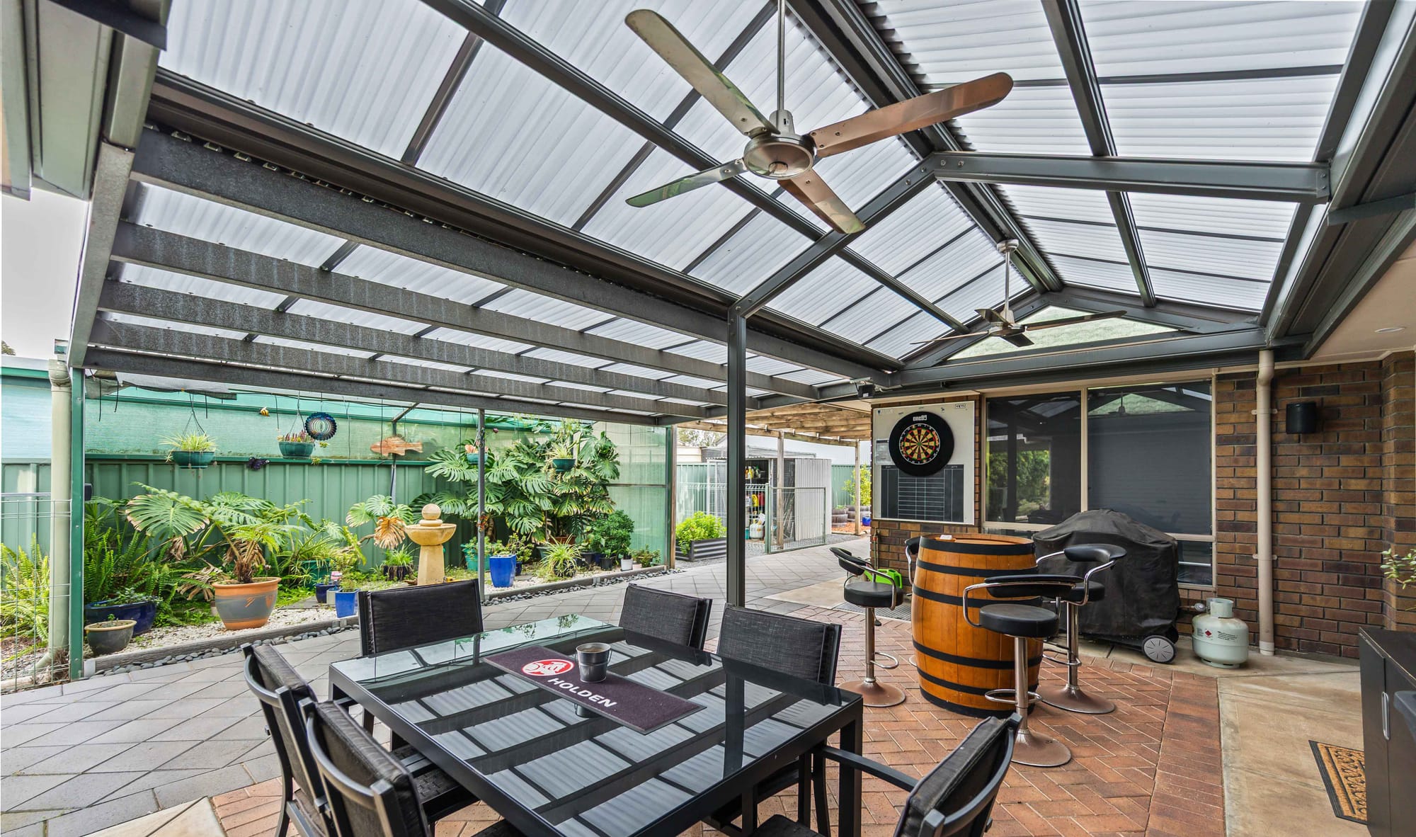 Outdoor living is equally appealing, with a lovely paved pergola just off the family room – ideal for long lunches or relaxed evenings with friends. The grounds are lush yet easy to maintain, providing inviting spaces to wander, play or unwind.
