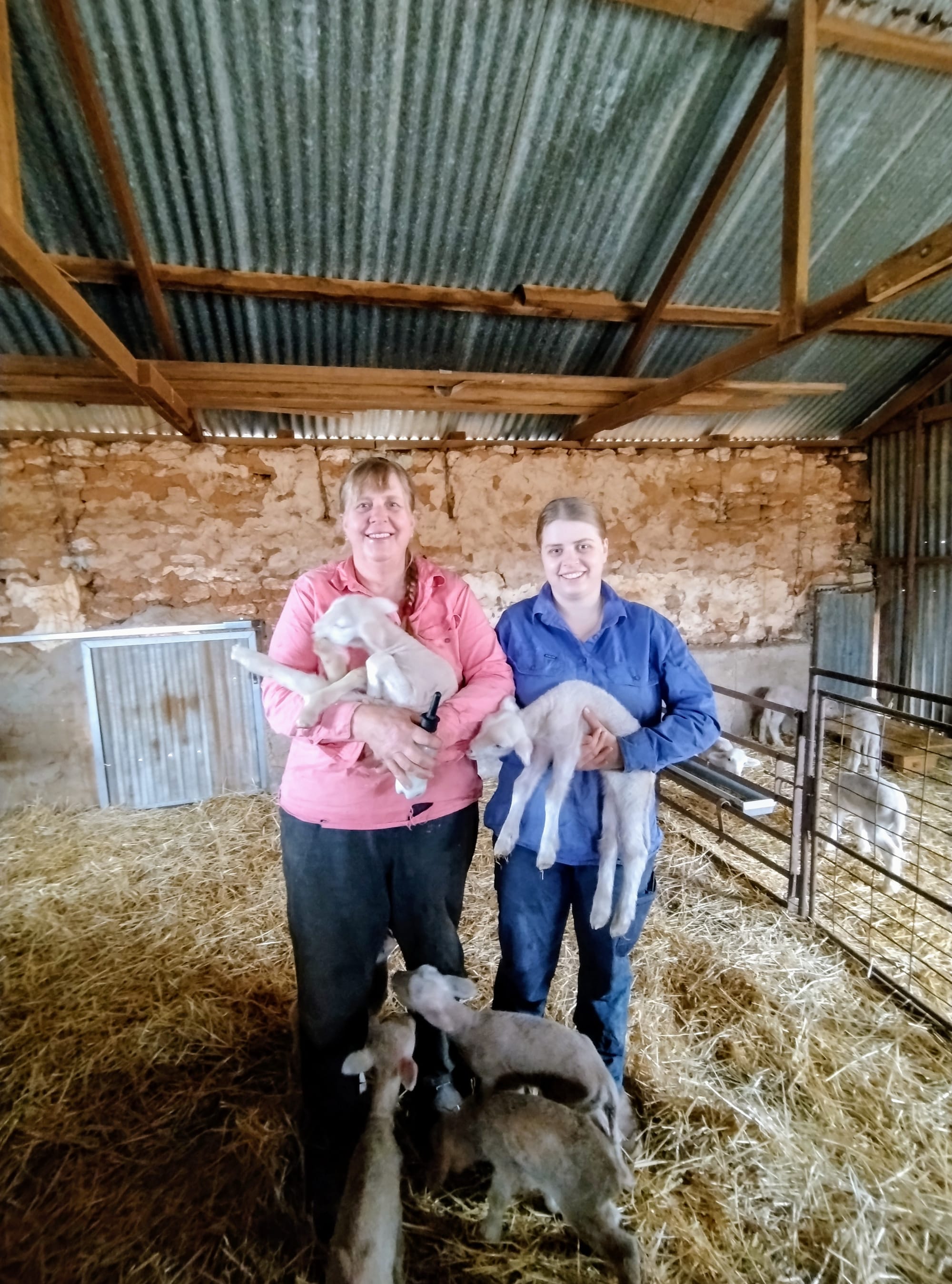 Members of farming family, the Jaegars, from Buchanan, east of Eudunda, have set up an inventive new system in an old shed on the property for taking care of lambs.