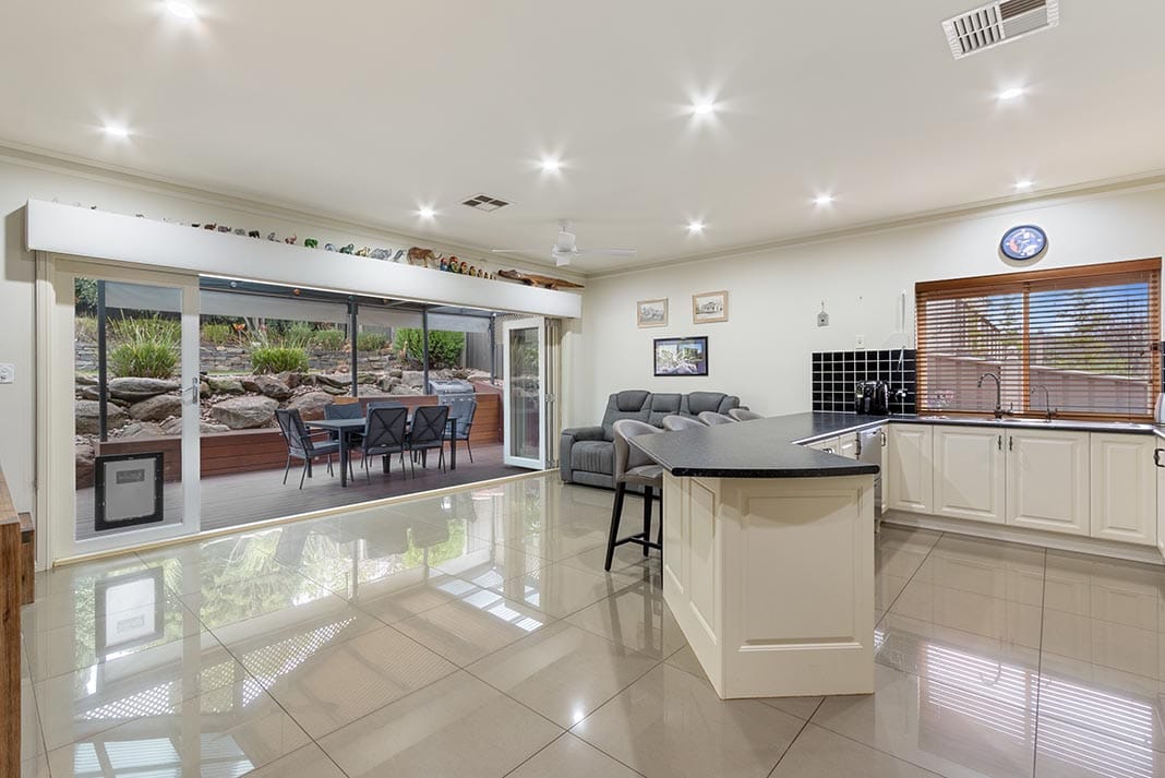 From here, step out onto the expansive deck verandah, ideal for outdoor entertaining or simply enjoying the serene surrounds of the backyard.