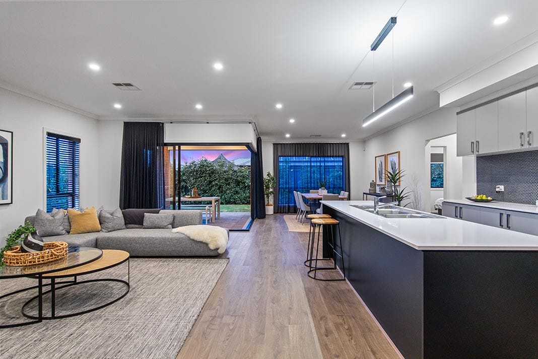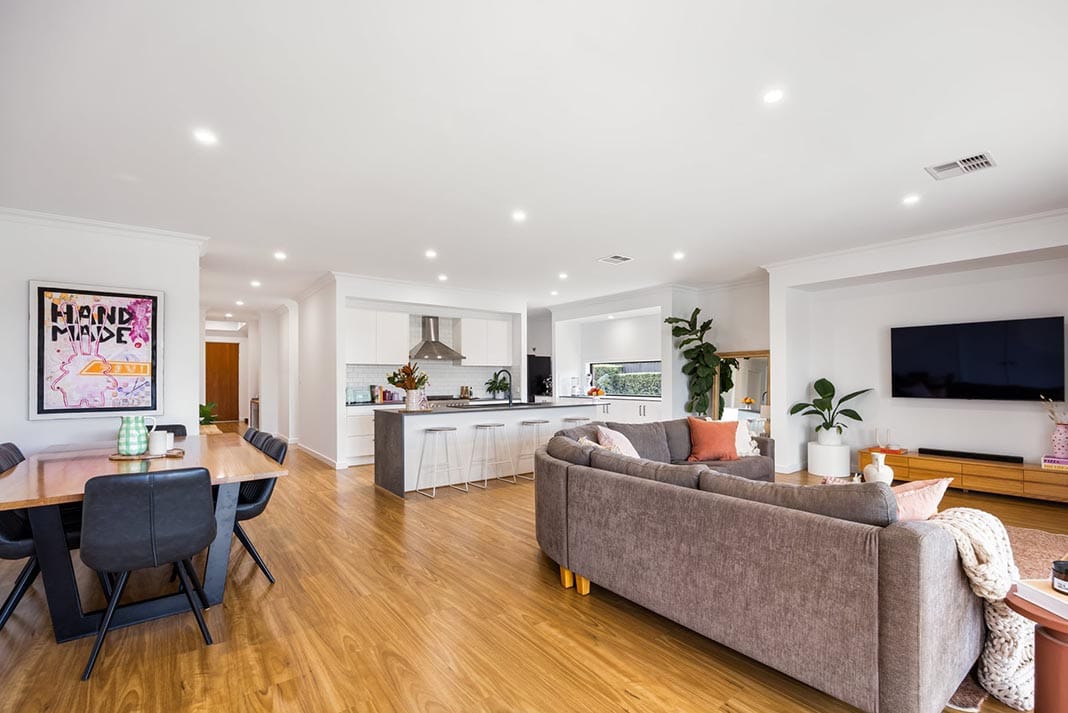 The open-plan kitchen, dining, and living area forms the heart of the home - a beautifully designed space for the whole family to gather. There’s also a second living area that can be closed off, making it ideal as a theatre room, kids’ retreat, or a quiet spot to unwind.