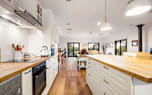 Upstairs, the centerpiece of this remarkable home is the entertainer’s paradise, the generously sized open-plan living and dining area, which also extends to the upper-level balcony, creating a relaxed living space that flows seamlessly from the kitchen.