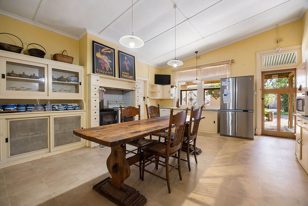 A standout feature is the expansive country kitchen, added around 1905, where the original wood stove sits proudly alongside modern conveniences including a contemporary oven, cooktop and dishwasher.